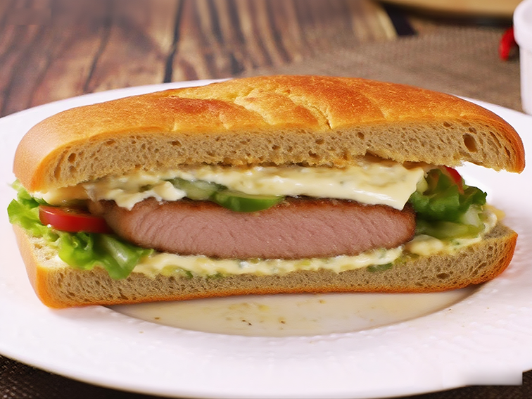 特點:將豬排作為三明治的核心,搭配爽脆蔬菜和醬料,口感層次豐富,是完美的便攜餐點。