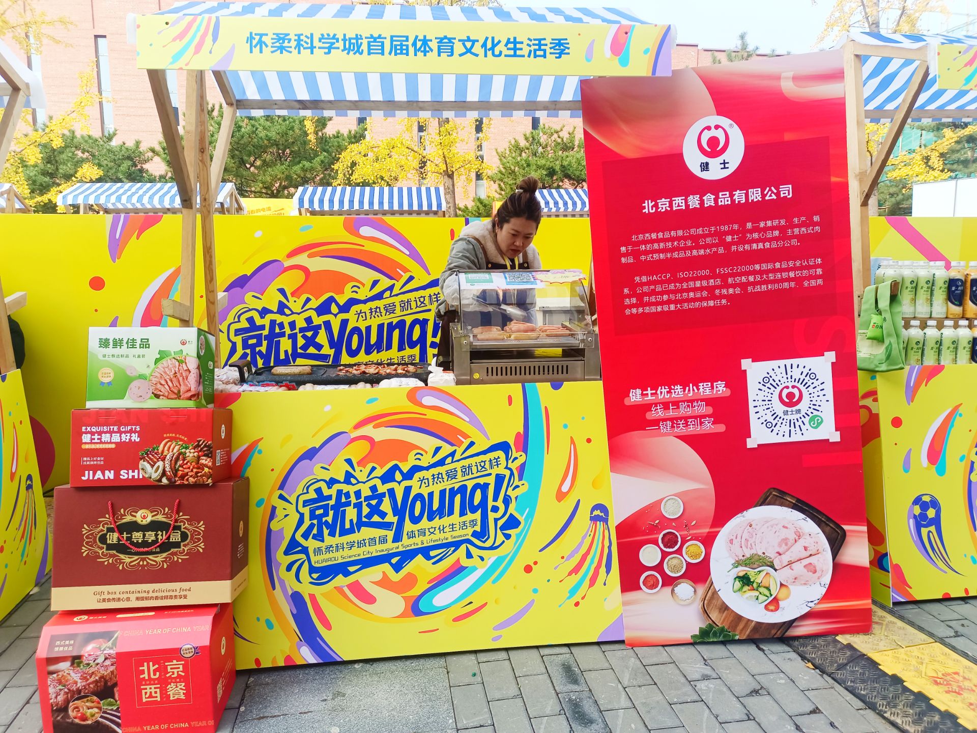 10月25日,懷柔科學(xué)城首屆體育文化生活季文創(chuàng)市集熱鬧開集,這里充滿了運(yùn)動(dòng)的活力與文化的創(chuàng)意,我們將人氣產(chǎn)品德式香腸與精制培根帶到現(xiàn)場(chǎng),新鮮制作、即時(shí)品嘗。剛擺好食材,煎制香腸的滋滋聲與培根的香氣就吸引了大批人駐足,濃郁肉香迎風(fēng)飄散,迅速點(diǎn)燃了市集的氣氛。