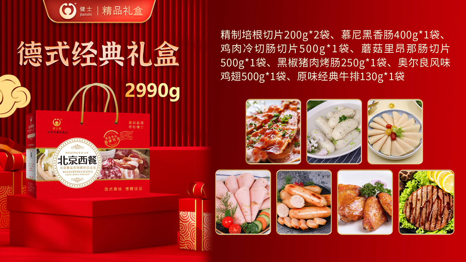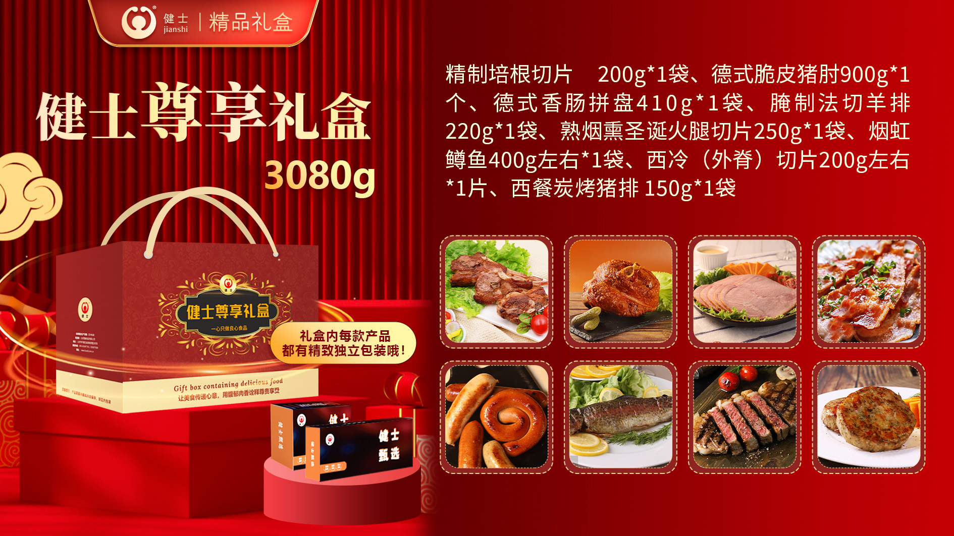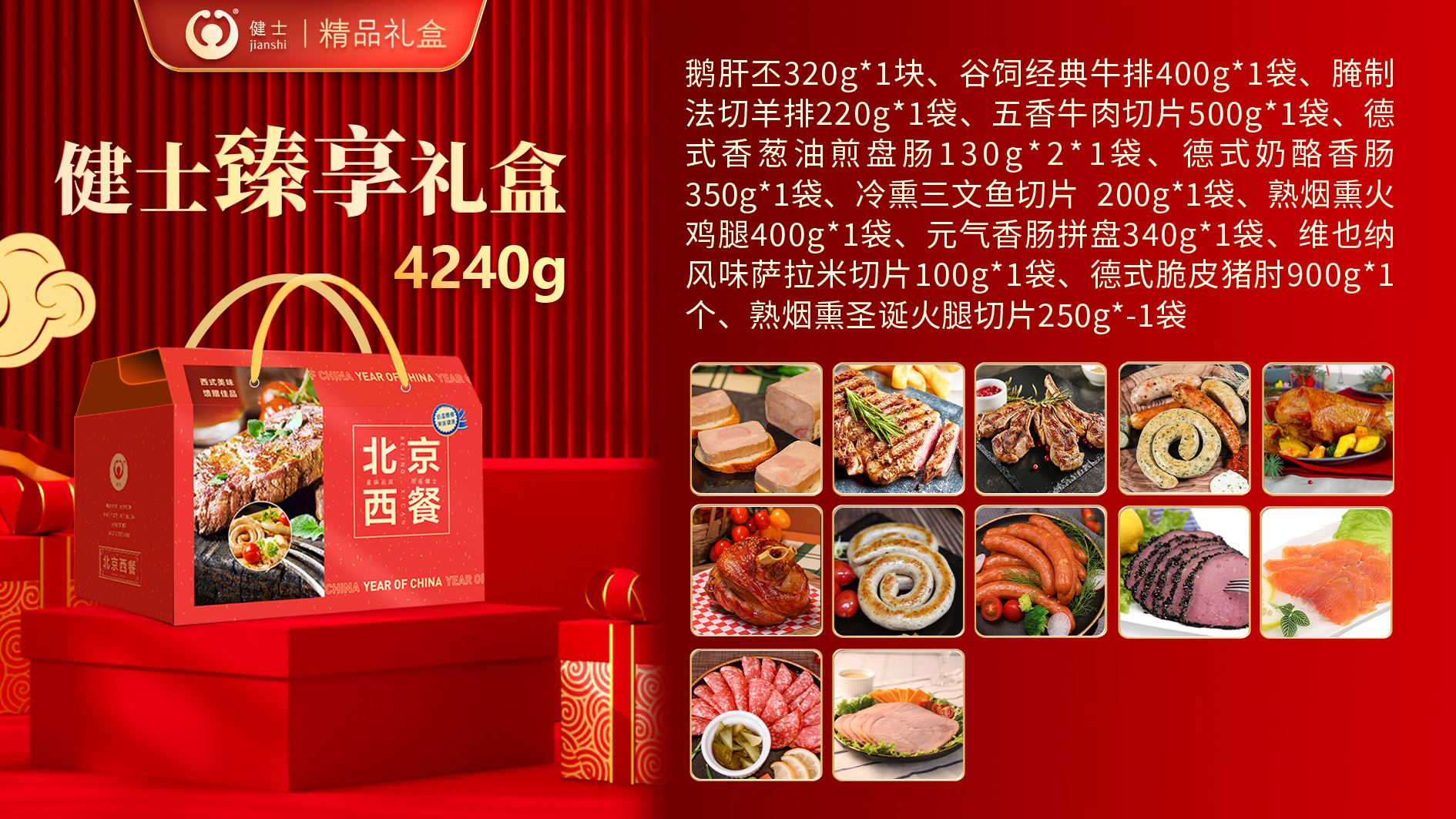 禮盒內(nèi)包含谷飼牛排、法切羊排、鵝肝丕、火雞腿、德式烤肘、經(jīng)典西式香腸以及培根等產(chǎn)品,還原濃郁異域風(fēng)味,無需繁瑣操作,在家就能享受星級西餐體驗!